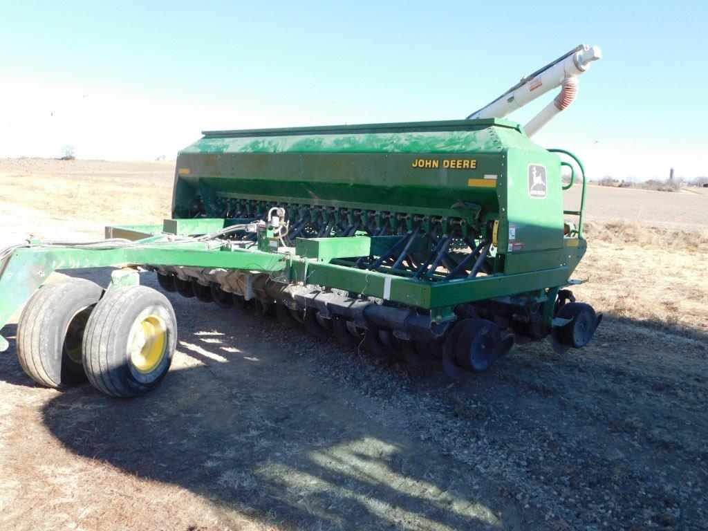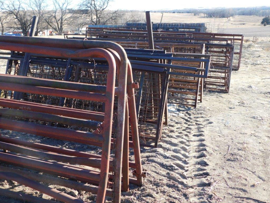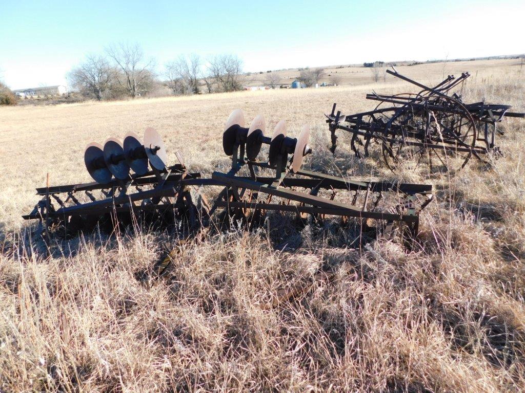 drive hay rake with dolly wheel, good; New Holland 352 grinder- mixer, shedded; John Deere 1560 no-till grain drill with fert. & hyd. drive loading auger, SN: 1560X695234, new discs & new style packing wheels in April 2018, very good, shedded; John Deere 235 centerfold disc, SN: A00235H017747; Hutch Master 14 rolling plow offset disc; Glencoe 4-row 3 pt. cultivator; 3 JD F145 5x16 plows & (1) 4x16 F-145 plow; JD 2-row 3 pt. rotary hoe; 2 JD front mount 4-row 36 cultivators for NF tractors; older GT 250-bu. batch PTO & propane grain dryer; Bush Hog 5 3 pt. rotary mower; IHC 311 6 3 pt. rotary mower; JD No. 5, 7 mower; JD No. 8, 7 mower, needs some work; Mayrath 8x72 PTO bottom drive grain auger, good; David Bradley running gear; other running gears; 30 Hillsboro pull type hyd. fold springtooth; Hesston 2 pt. bale carrier; front loader bale spear, good; IHC 45, 18 vibra shank; 3 pt. post hole digger; 3 pt. 300-gal. poly tank sprayer with centrifugal pump with 30 booms, good; heavy duty shop built 3 pt. 8 swivel blade; Ford pickup bed trailer; 500-gal. poly transfer water tank; heavy duty 3 pt. single spear bale mover; Peck 8 hyd. drive hopper unloading auger, good. LIVESTOCK & FENCING ITEMS Palco head gate, very good; Paul hog livestock scale; older cattle working chute; hog head gate; metal loading chute (needs floor); 2017 Titan West Original portable corral, 80 head capacity; (2) 16x7 wide steel tanks cut for shelters; several metal gates & panels; (2) 3 pt. carryalls; 40 wire cattle panels & 170 wire hog panels, all good; (100) 6, (370) 5 1/2 & (55) 5 good used steel posts; |