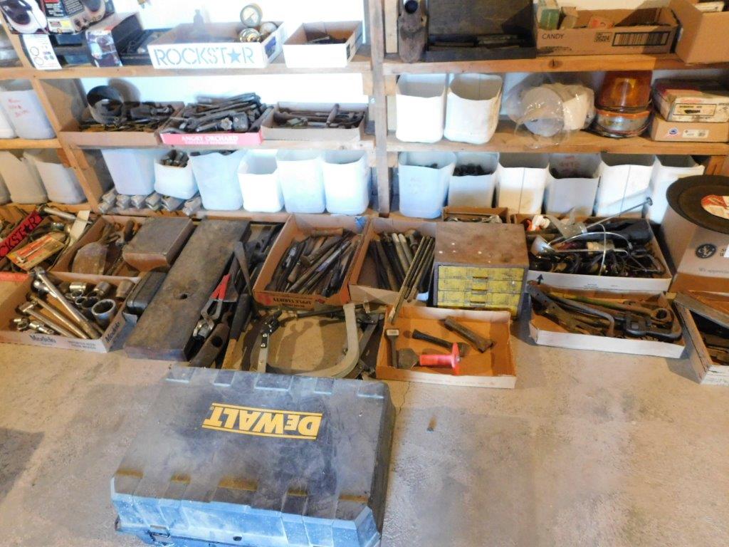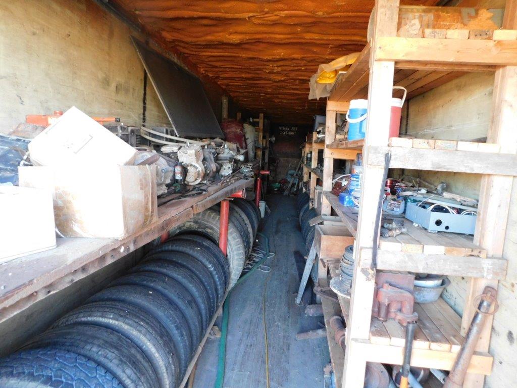 gas-powered log splitter on wheels; plus many misc. shop items. ANTIQUE MACHINERY & TOOLS McCormick IHC 1-row ground drive corn binder, shedded, working condition; Case No. 5 6 horse pull mower; 2 walk behind plows; other old machinery; old Case toolbox; several antique wrenches of all types; 1-row lister; several old iron wheels; 3 pump jacks; old Whippet car body parts including frame, fenders & a 1928 tag; old wooden ice chest; sausage press; assorted old manuals; traps; many old gas motors including Maytag, Clinton, Iron Horse, Briggs & Stratton, John Deere LA tractor motor, Continental & Tecumseh; many new parts for these old motors. STORAGE VANS, CONTAINERS & MISC. 1992 Stoughton 47 1/2x136 high van storage trailer with battery operated fold-up lift end gate; Strick 45 van storage trailer; 45 van storage trailer, no wheels; (2) 45 steel storage containers, good; some storage racks, wood & metal; Yardman 20HP 46 cut lawn tractor mower; several CB radios; several piles of dry firewood; many, Many new truck parts, lights, used tires, 1 new 455/50 R22.5 Michelin XDN2X one tire; many, many assorted nuts, bolts, small shop items. |