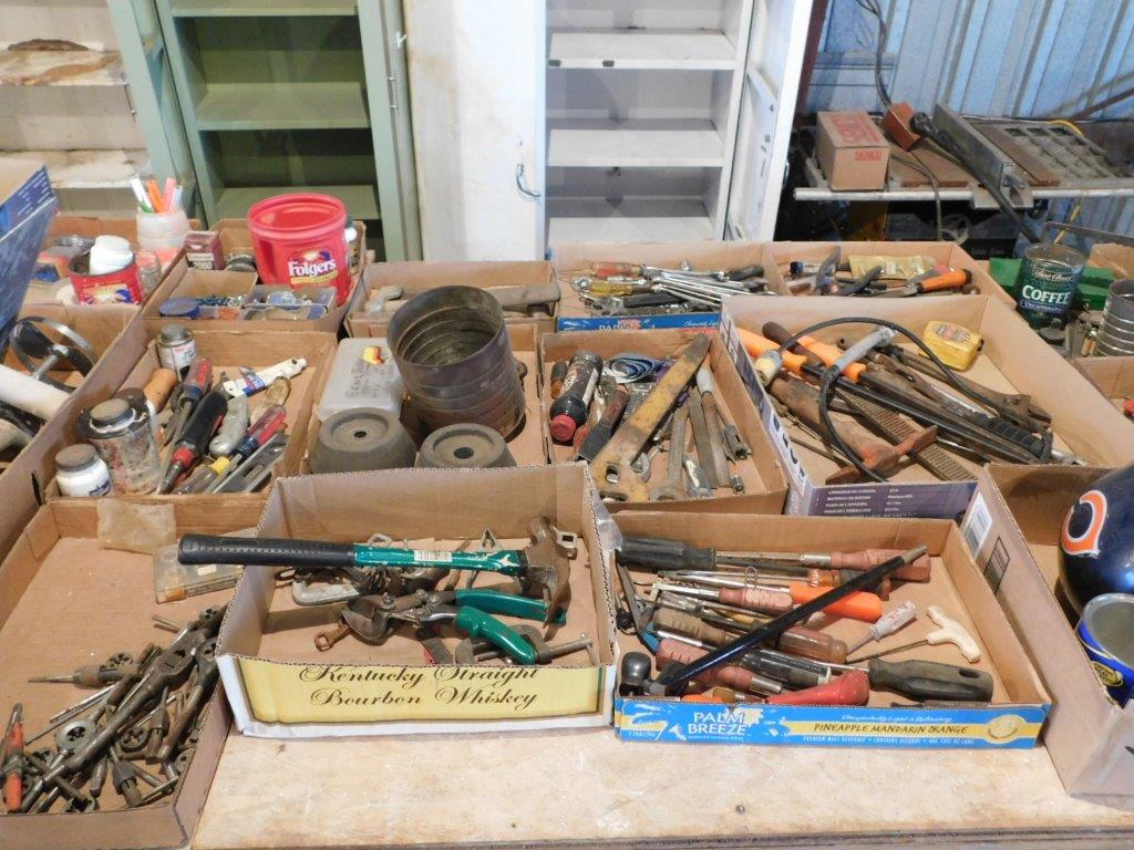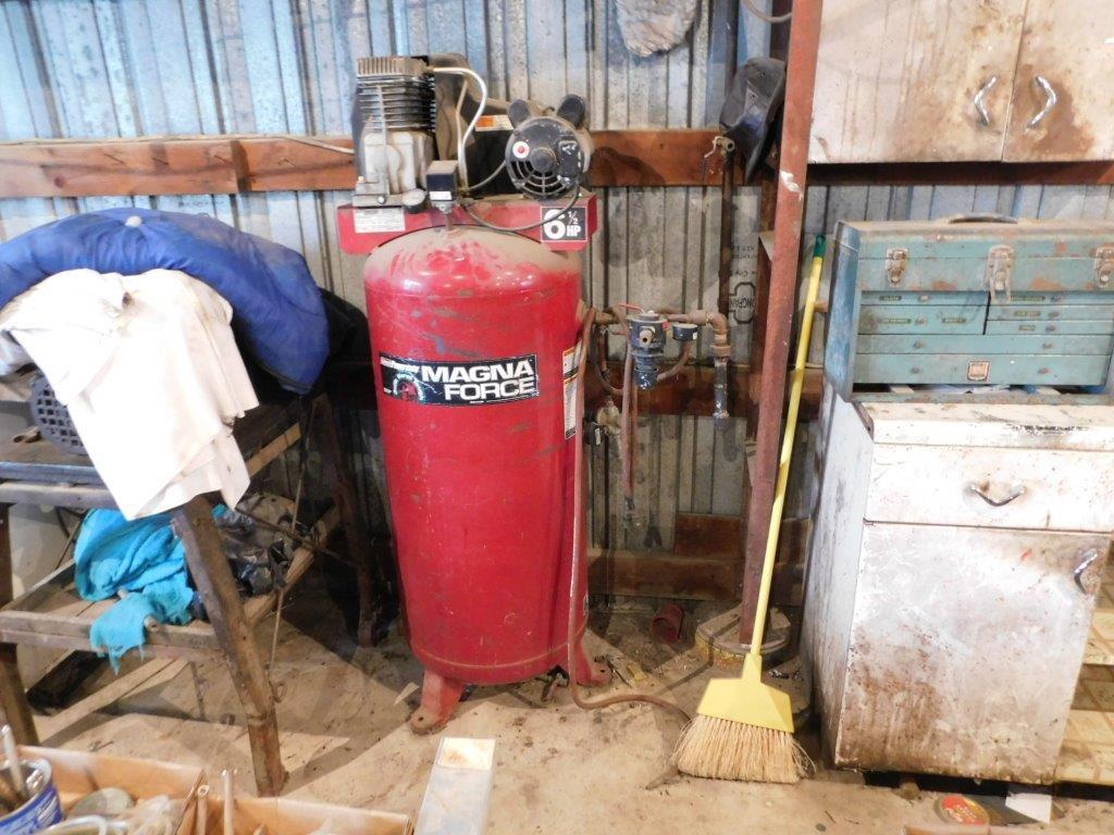 IRON, PIPE, SQUARE TUBING & MATERIAL All very good! (2) 20 heavy duty iron storage racks; 34 pallets of flat iron, angle, pipe and tubing; (35) 20 lengths of angle iron, tubing and bar stock; new bolts ranging from 1/4 to 1, various lengths 1 to 6; 70 steel posts; 2 electric fencers, Fi-shock 10 mile and 20 mile, new; various sizes of tire chains. LUMBER Approx. 900 board ft., rough sawn Oak lumber & 230 board ft. rough sawn Walnut lumber, all inside, very good CARPENTER TOOLS Sheet rock jack; 106 metal brake for bending coil stock; DeWalt laser level; Milwaukee cordless 5 piece set skill saw, sawzall, 1/2 drive impact, hammer drill, flashlight; Milwaukee 8 metal cutting circular saw; Magnum XR-9 airless paint sprayer; Bostitch-Roofing nailer, NEW, never used; Ridgid 15 amp 12 compound sliding miter saw; mounted on Ridgid utility vehicle; 6250 watt Coleman generator; Coleman 220 volt 6 1/2HP, 60 gallon tank air compressor; Ridgid portable 2 tank compressor; Omni 16 speed drill press 1/2; Power Mate drill press 1/2; Perry adjustable scaffold, 28x70; (3) 6 fiberglass step ladders; (1) 6 wooden ladder; (2) 6 aluminum ladders; (2) 8 fiberglass ladders; (1) 16 fiberglass extension ladder; (1) 20 fiberglass extension; Weather-guard truck tool box; tool box for small pic; pneumatic hoses, ranging from 25-100 ft.; Black & Decker Workmate; several log chains, various sizes. MECHANIC TOOLS Sioux valve grinder; Sioux valve seat grinder; 2 timing lights; crank pin tool, antique; wrist pin hone, antique; cylinder hone, antique; remote starter switch; vacuum gauge; ring compressor; dwell tachometer gauge; valve spring compressor; ring groove cleaner. HAND TOOLS 3/4 drive Mac socket set; num. sockets, end wrenches, pipe wrenches, hammers, crescent wrenches, roof jacks, shingle stripping forks, chisels & punches. ELECTRIC SUPPLIES 100 8-3 appliance cable; 50 6-3 appliance cable; approx. 200 10-3 Romex; New 125 roll of 6-3 Romex; (22) 2-x4 t-8 fluorescent troffer lights; 30 extension cords, 25-100 sizes; many other miscellaneous electric supplies. ANTIQUES - To sell at 11:00 AM 9 steel wagon wheels; stone water jug; multiple stone crocks and jugs; 2 trunks; old lamps; milk cans; tin cans; kitchen tools and items; White sewing machine with wooden case; Singer sewing machine; oak large parts bin with drawers; 2 vintage dressers, one with mirror; full size wooden vintage bed frame; Allis-Chalmers paper part sacks; silver flatware with wooden case; porcelain pans and kitchen utensils; canning jars; wardrobe; vintage baby bed. HOUSEHOLD ITEMS-Sells After Antiques Mahogany full size bedroom set with 2 dressers; queen size bed frame with mattress; oak dining room table & 6 matching chairs; oak dining room chairs, 6; large entertainment cabinet; bookcases; file cabinet; wood desk; microwave cabinet; wooden futon with cushion; baby cradle; overstuffed chair; elliptical Proform IPod compatible, new; Air-Dyne exercise bike; chest freezer, medium; canning jars and equipment, some vintage; miscellaneous kitchen items; garage door Promaster opener with new track and wide up spring; oxygen concentrator, nearly new. |